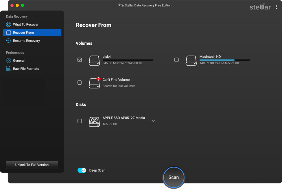 Ever wondered what if you don’t have a backup of recently deleted files? In such a case, you can use third-party free Mac data recovery software such as Stellar Data Recovery Free for Mac to restore your deleted files. This all-in-one data recovery software can help you restore files deleted due to accidental deletion, formatting, system error, and many other reasons. The software supports recovery of deleted photos, videos, documents, emails, chats, and other types of files.